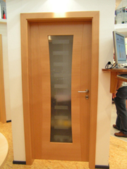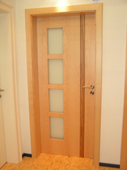 - Satiniertes Glas mit Holzsprossen und Einschubsystem